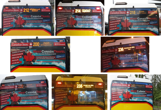 2019 - Canadian Store geht mit WestCanadaTravel auf die Strasse. Von uns aus eine gelungene Werbung. Der Bus wird auf den Linien zwischen Zürich (Enge & Wiedikon), Muri, Aeugstertal, Affoltern am Albis und an seltenen Sonntagen natürlich auch nach Merenschwand eingesetzt.